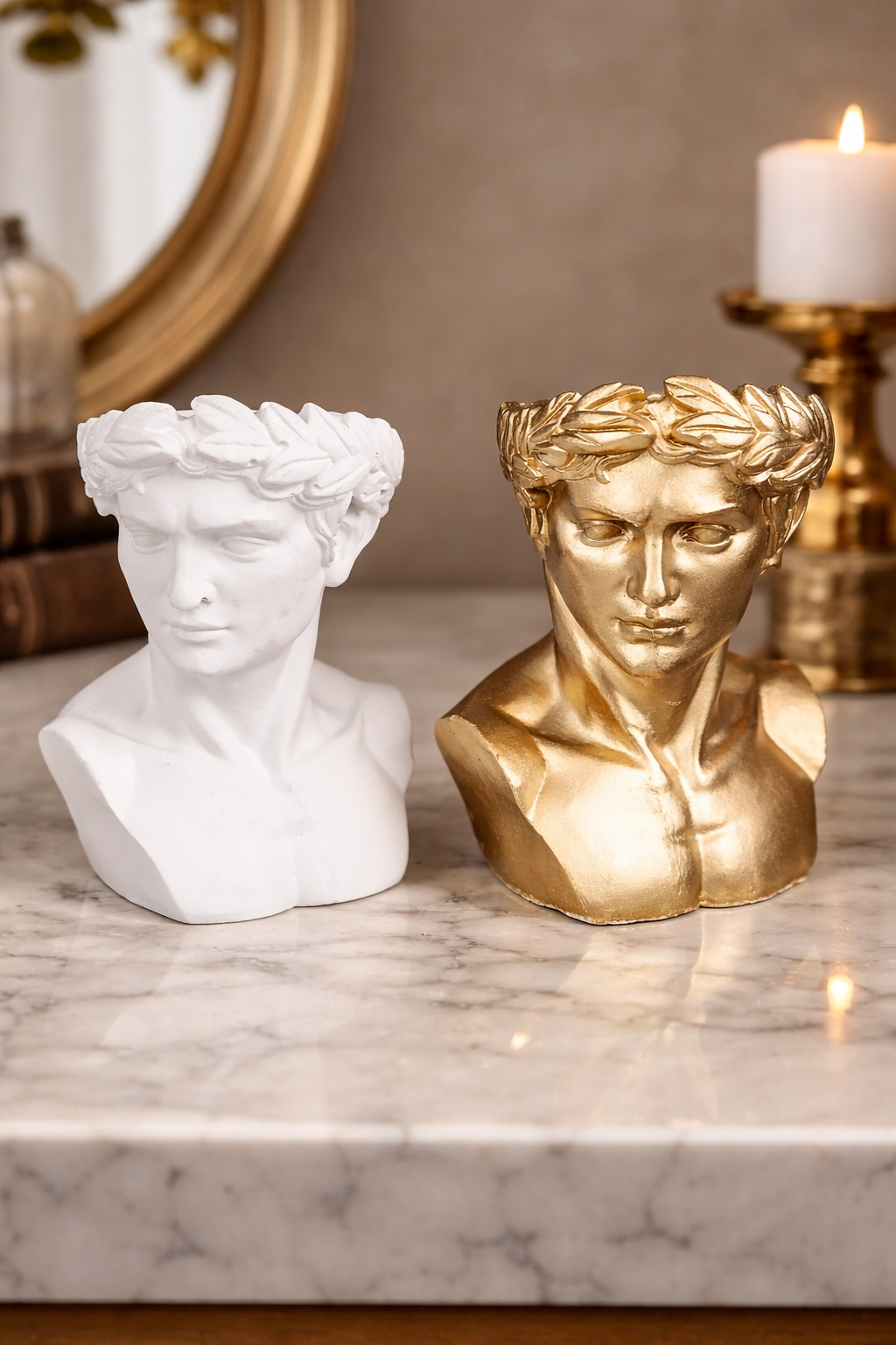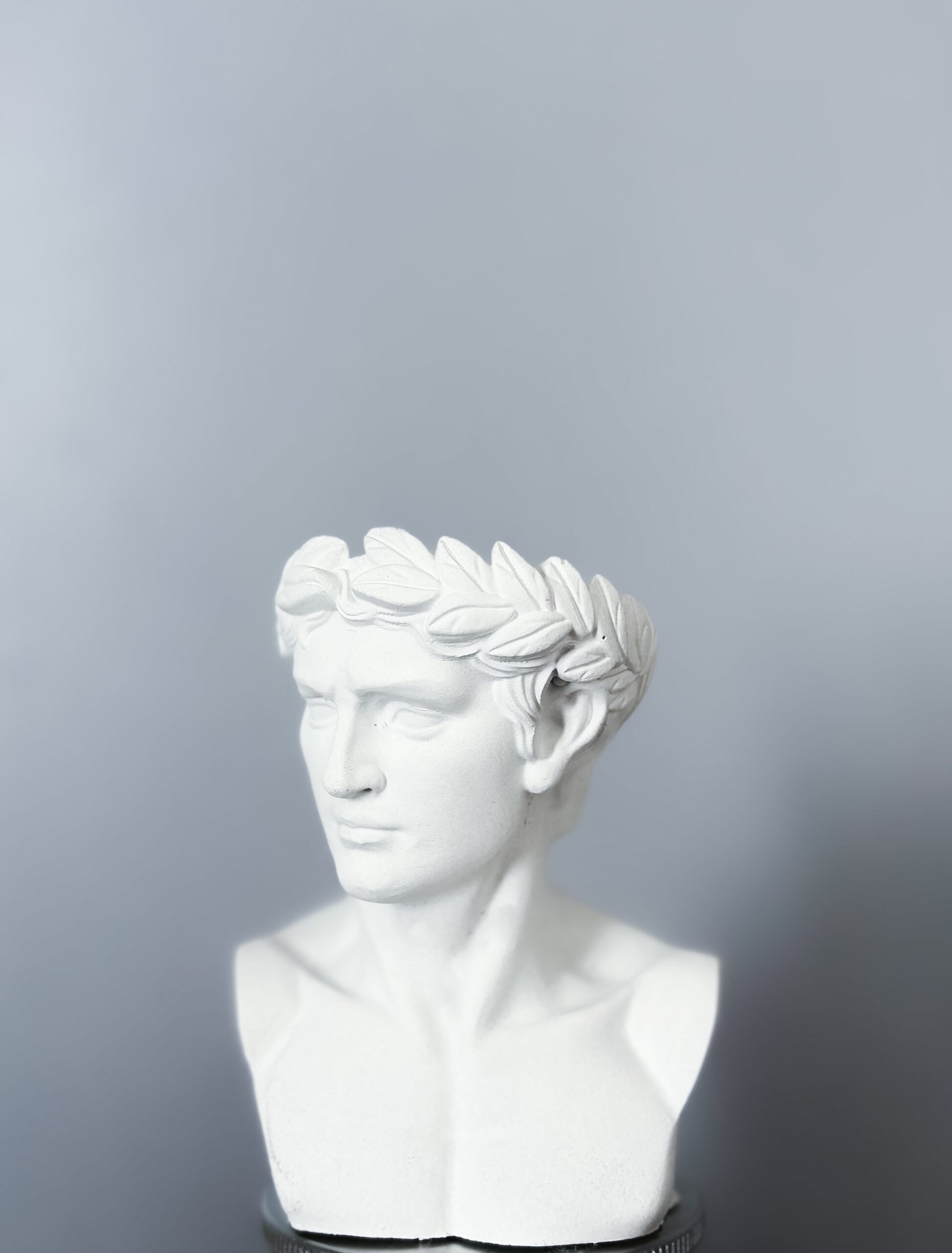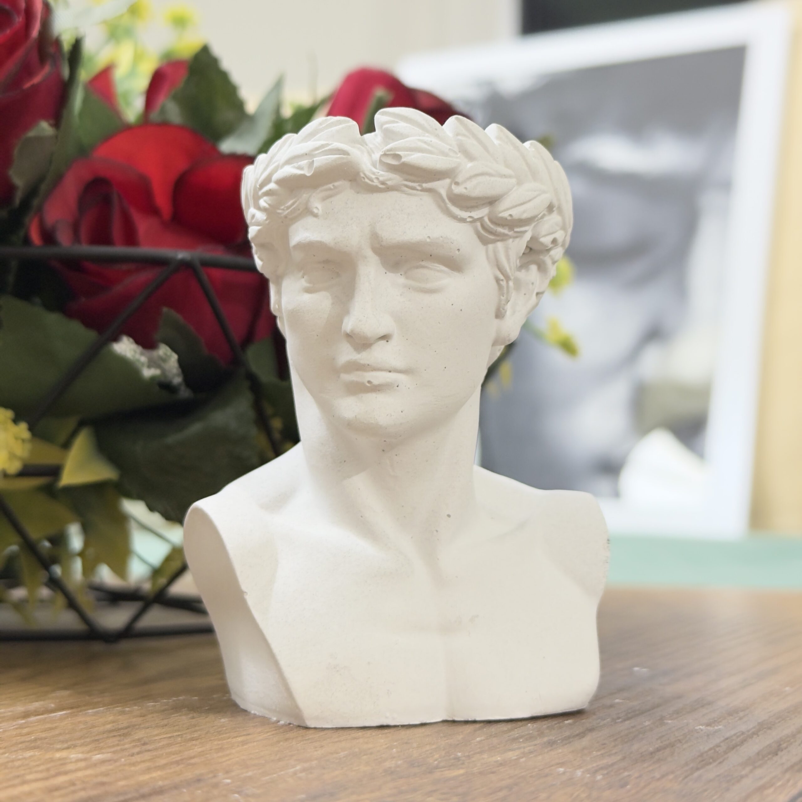 Грчка класика во вашата дневна. Детална биста со лавров венец. Доминира во секој простор.