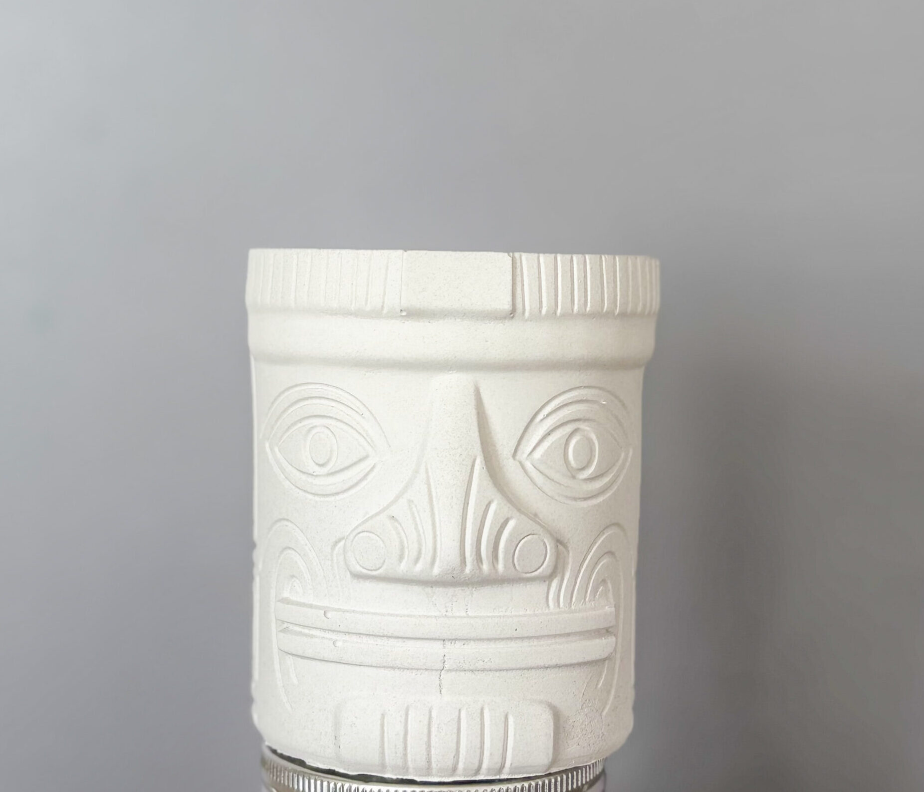Донесете малку тропска енергија дома. Оваа тики саксија со изразни очи и племенски мотиви веднаш додава карактер и хумор на секоја полица. Совршена за мали растенија, сукуленти или кактуси.